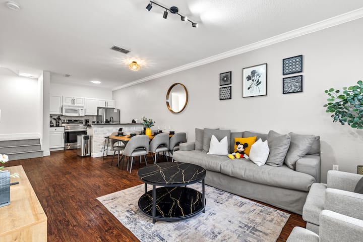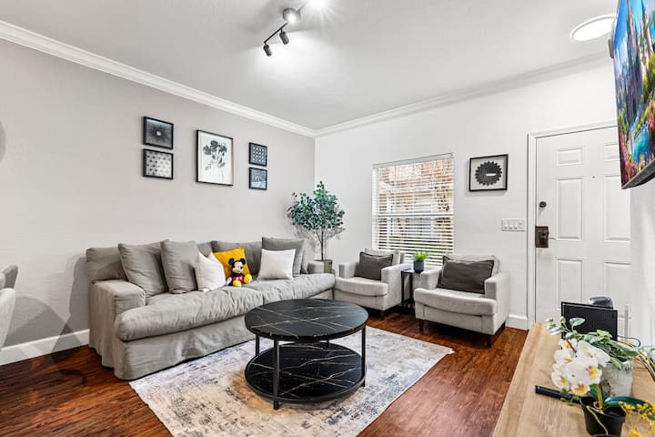 • Living Area: Open-concept living room with comfortable seating, smart TV, and high-speed Wi-Fi, perfect for streaming after a long day at the parks.
