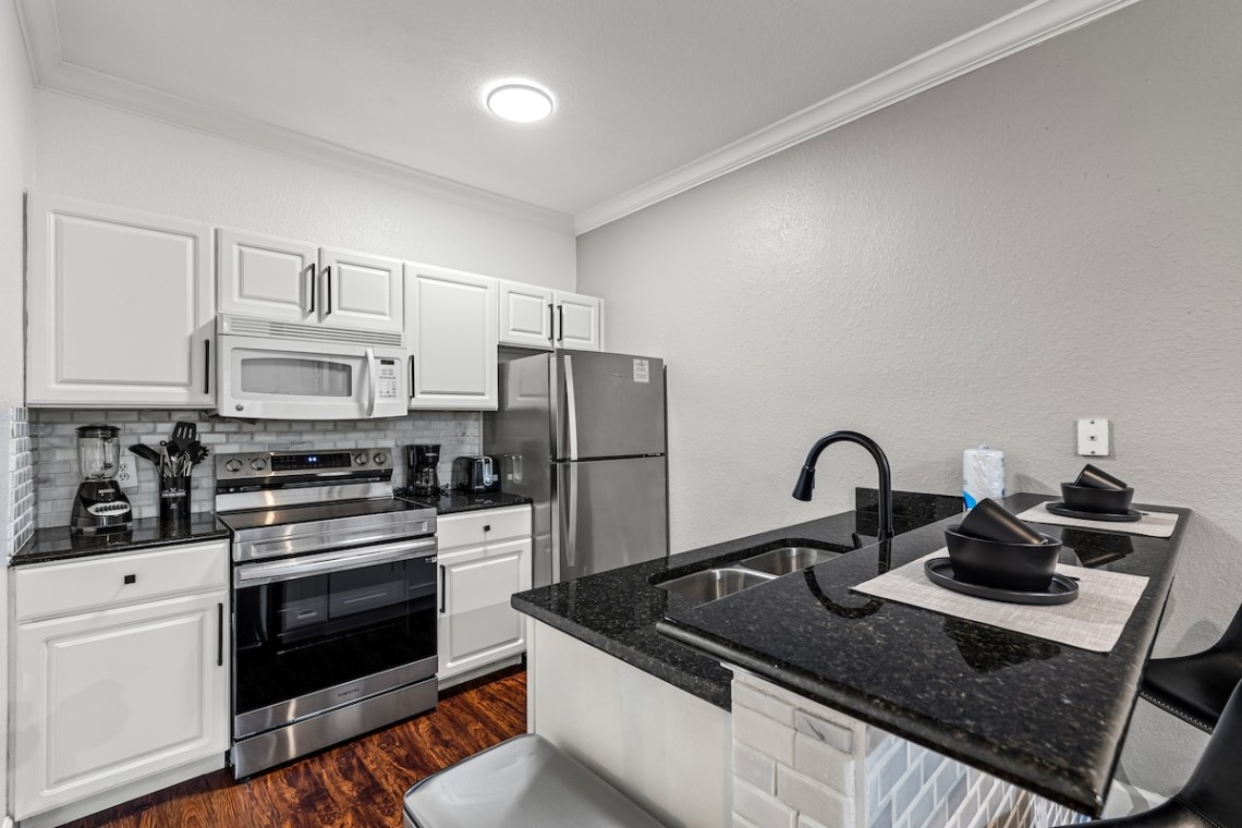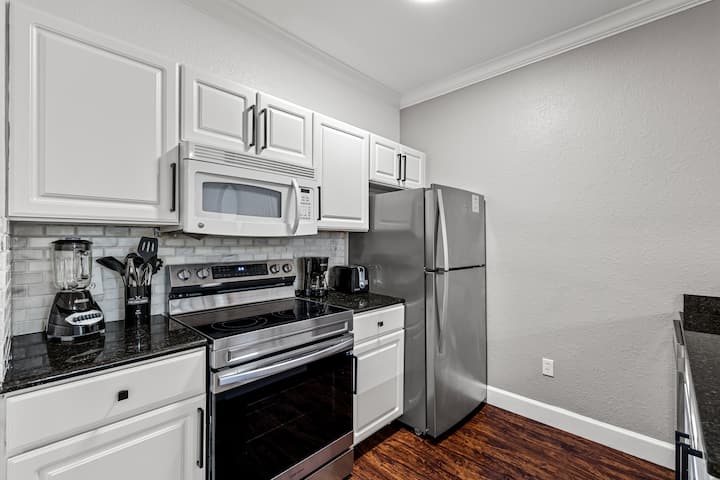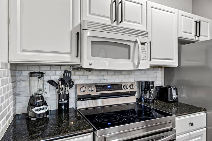 • Kitchen & Dining: Save on dining out with a fully equipped kitchen featuring granite countertops, stainless steel appliances, and a breakfast bar.
