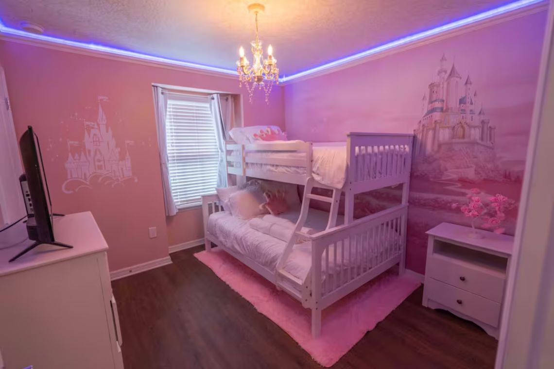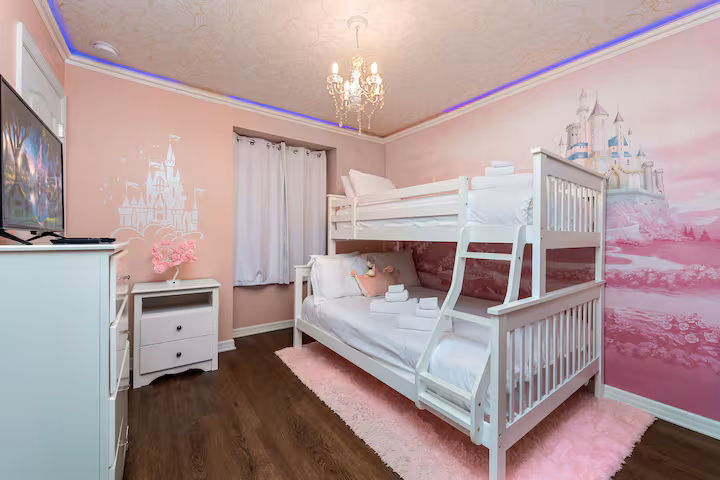 – Bedroom 4 (Princess): Bunk Beds – 1 Full + 1 Twin