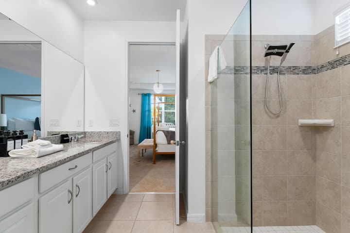 Bedroom 2: King bed, Smart TV, access to Jack & Jill bathroom with shower