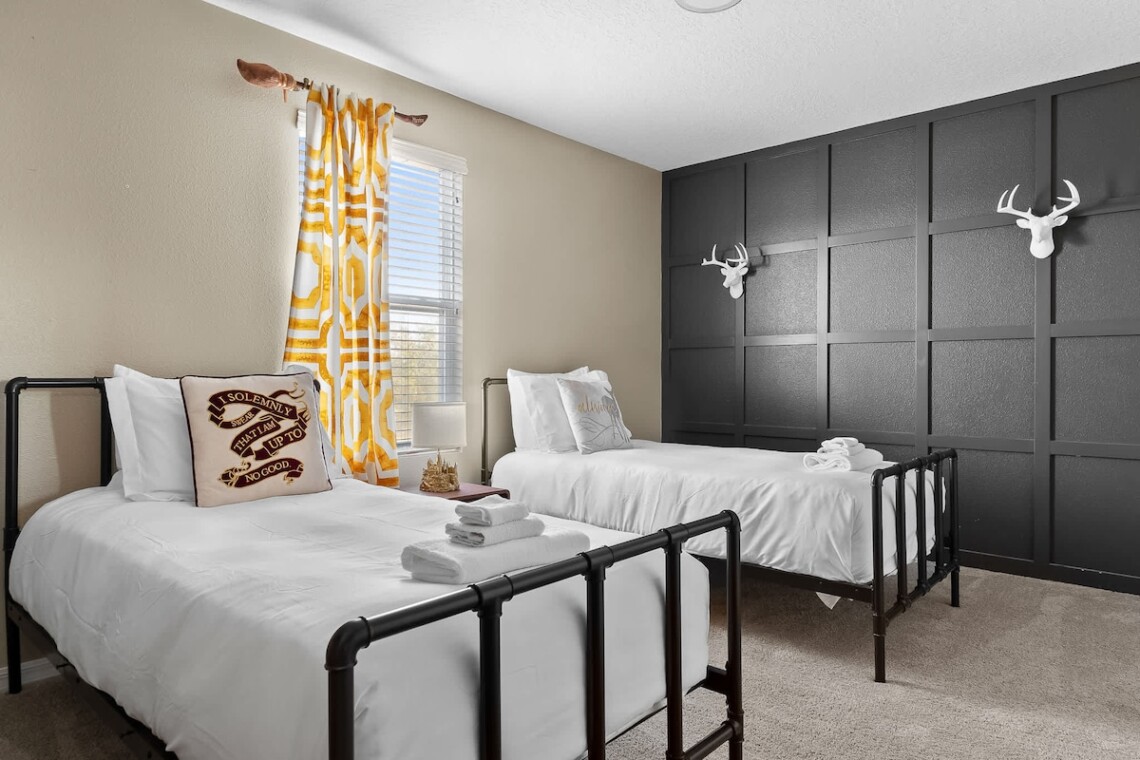 Bedroom 6: Two twin beds, Smart TV, shared bathroom