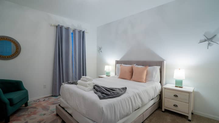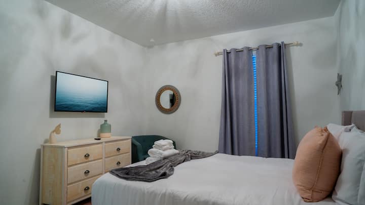 Bedroom 1: Queen bed, Smart TV