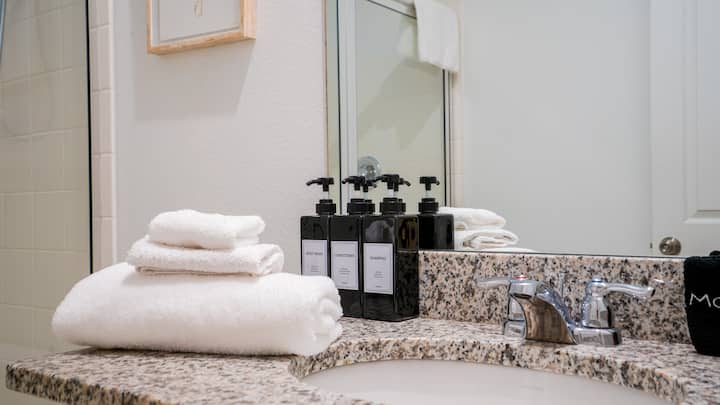 Safety Amenities: Smoke and CO2 detectors, a first aid kit, and a fire extinguisher for your peace of mind.