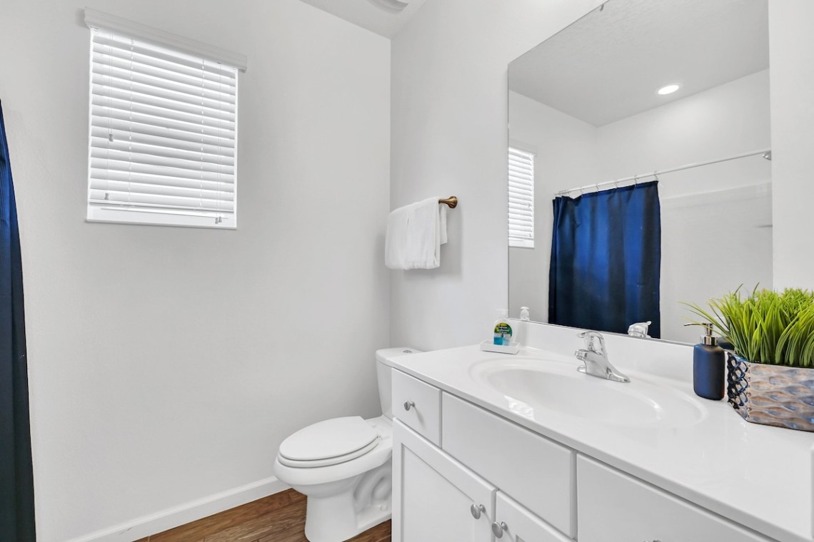 Guests have full access to the entire home, private pool, and all resort amenities, including the clubhouse, fitness center, community pool, playground, and walking trails.