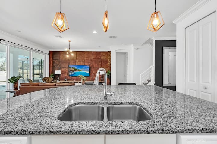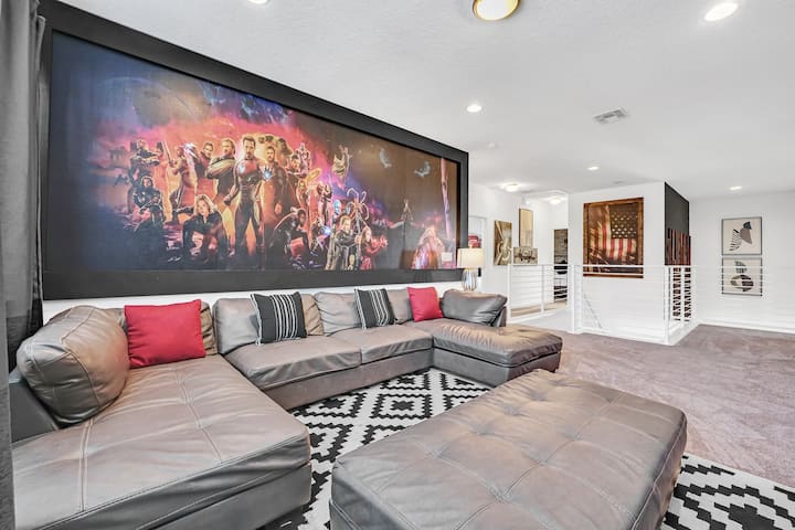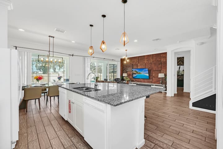 Experience our lakefront, Disney and Universal themed 8-bed, 5-bath home in Sonoma Resort, perfect for families and large groups. Sleeps 18 and features a private pool, themed rooms, and a full kitchen. Enjoy resort amenities including a clubhouse, fitness center, trails, and resort pool. Minutes from Disney World, Universal, SeaWorld, The Loop, outlets, golf, and top Orlando attractions!