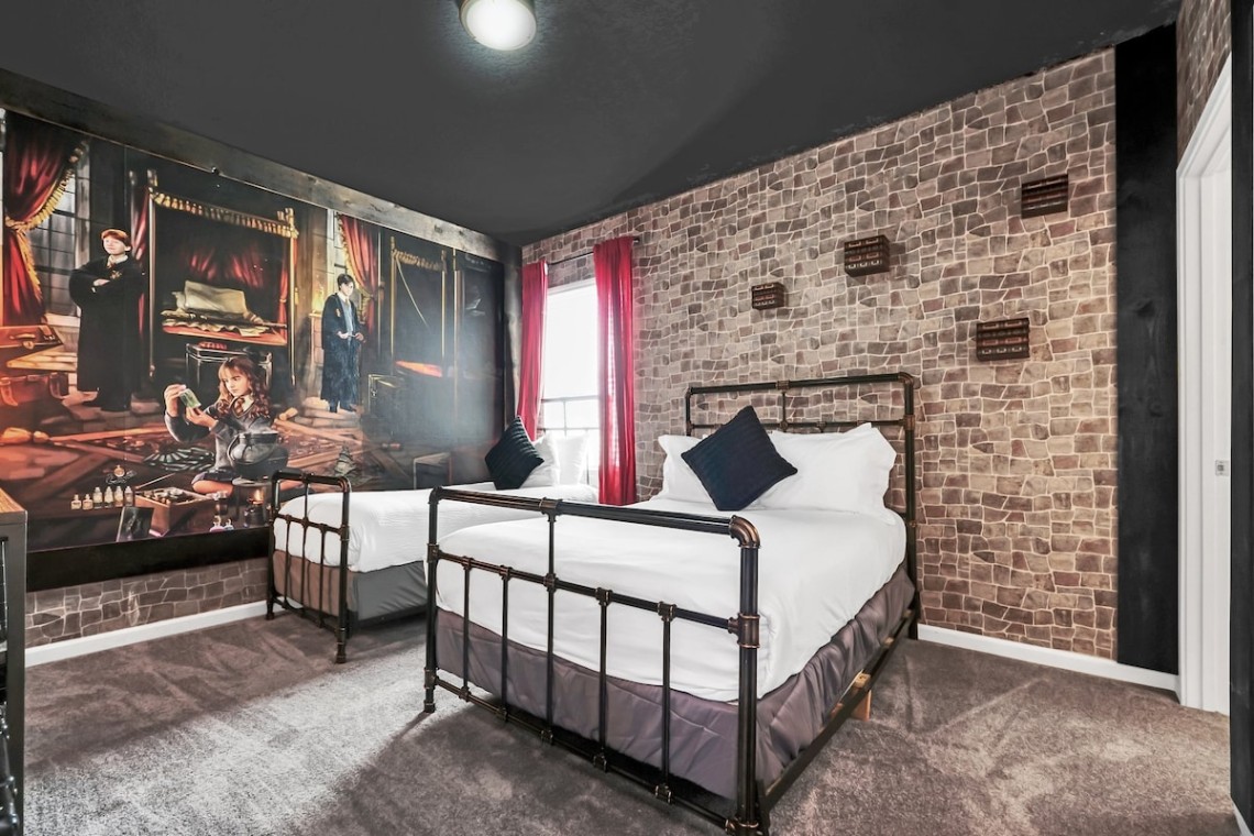 – Bedroom 5 (Harry Potter Theme): Full bed + twin bed, transporting you straight to Hogwarts.