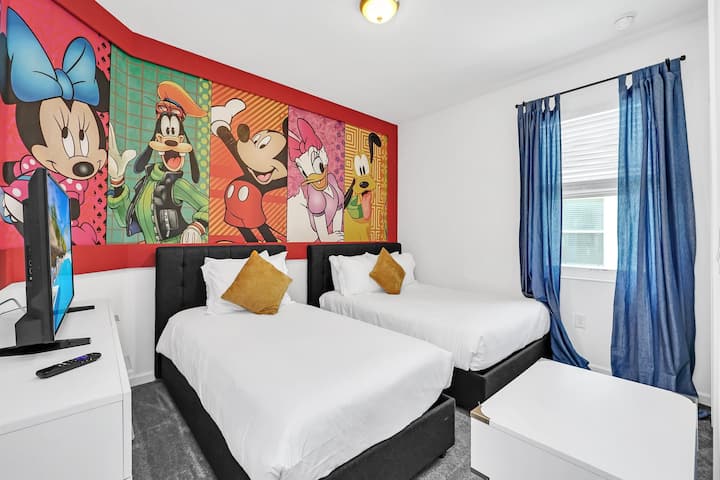 – Bedroom 7 (Disney Theme): Full bed + twin bed in a magical setting.