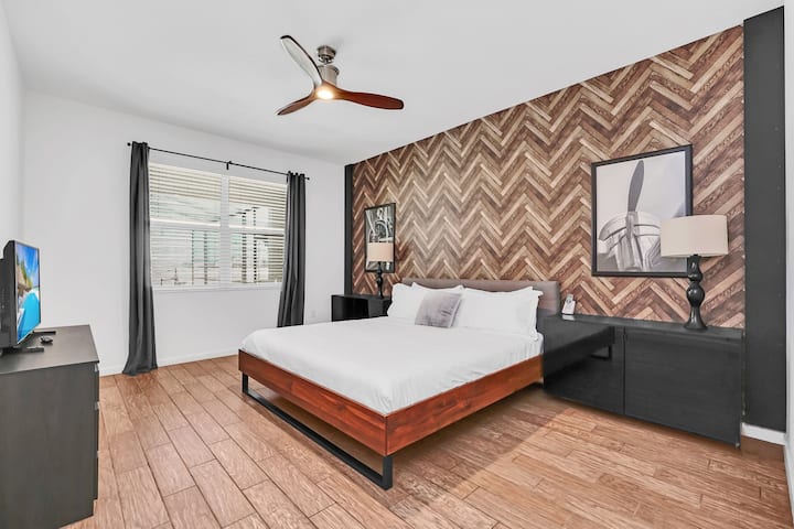 – Bedroom 1: King bed and ample storage.