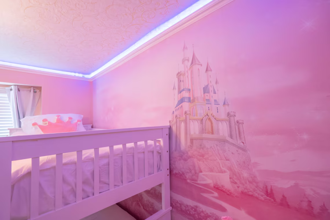 – Bedroom 4 (Princess): Bunk Beds – 1 Full + 1 Twin